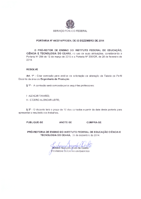 AbertaPORTARIA Nº 44/2014/PROEN, DE 03 DEZEMBRO DE 2014