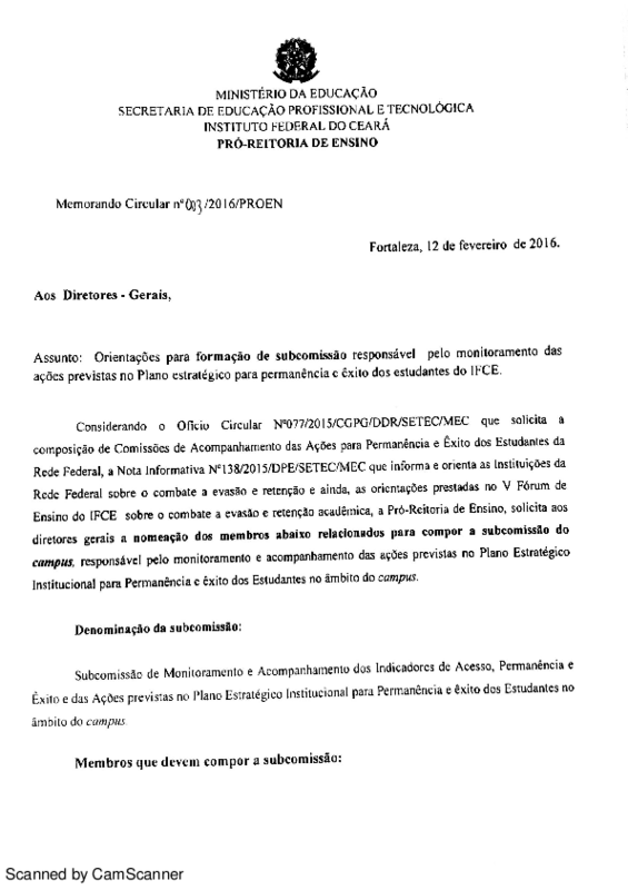 AbertaMemorando Circular No. 003/2016/PROEN/IFCE