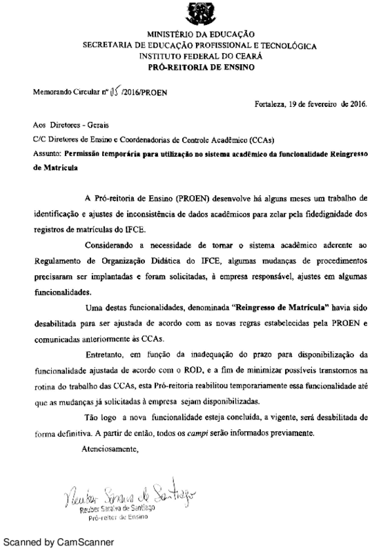 AbertaMemorando Circular No. 005/2016/PROEN/IFCE
