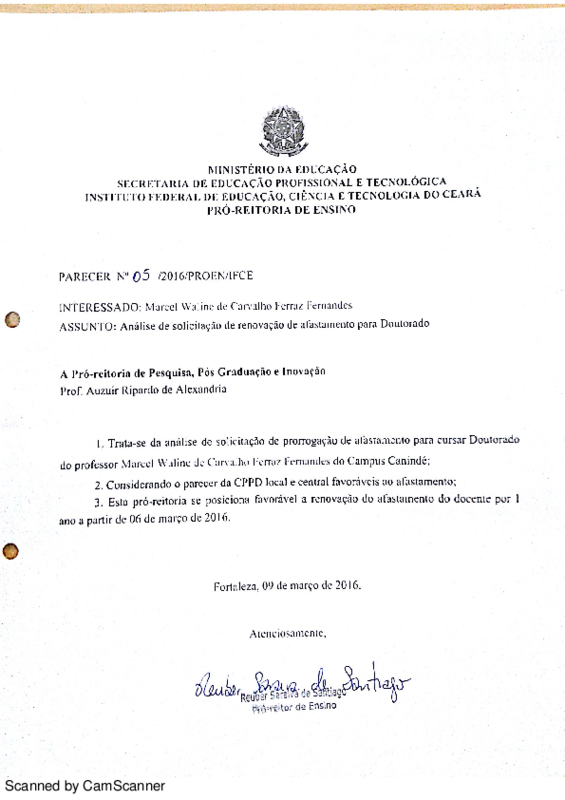 Renovação / afastamento para doutorado do Prof. Marcel Waline de Carvalho Ferraz Fernandes - Campus Canindé.